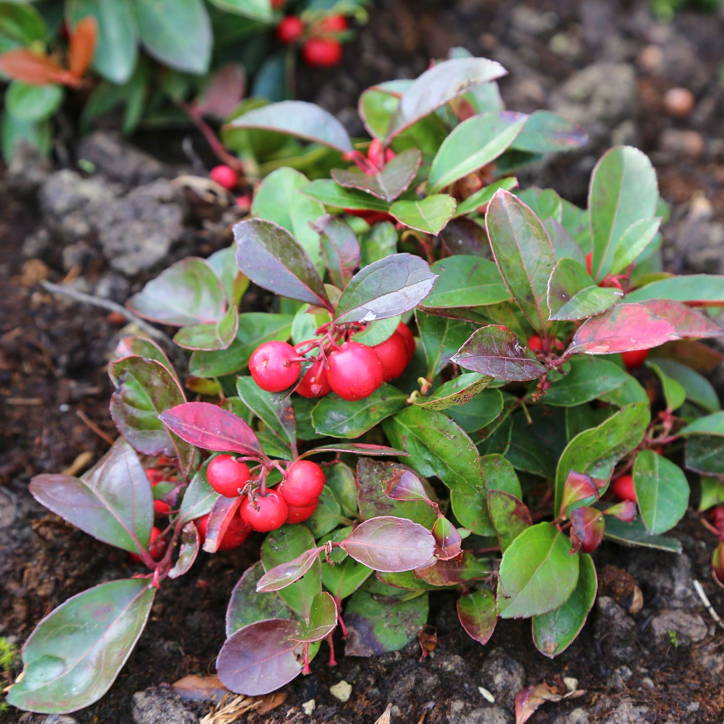 Ein gut frostharter Bodendecker für kleine Flächen wie bspw. auf Gräbern oder am Moorbeetrand. Die Rebhuhnbeere ist ein schöner Partner für Cornus canadensis, Azaleen (Rhododendron) und immergrüne Rhododendron-Hybriden.