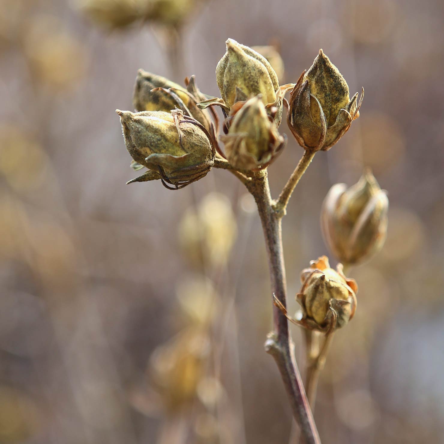 Die Früchte erscheinen als braune, fünfklappige Kapseln, die oft bis zum Frühjahr am Strauch bleiben. An zusagenden Standorten sät sich Hibiscus syriacus zahlreich aus. Die Rinde ist grau und das Holz sehr weich; die Äste brechen gern aus. Besonders, wenn nasser Schnee fällt, kann dies zu Problemen führen. Das Gehölz bildet ein fleischiges Herzwurzelsystem aus.